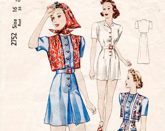 Vintage Sewing Pattern 1930s 30s Reproduction Playsuit Beach Etsy